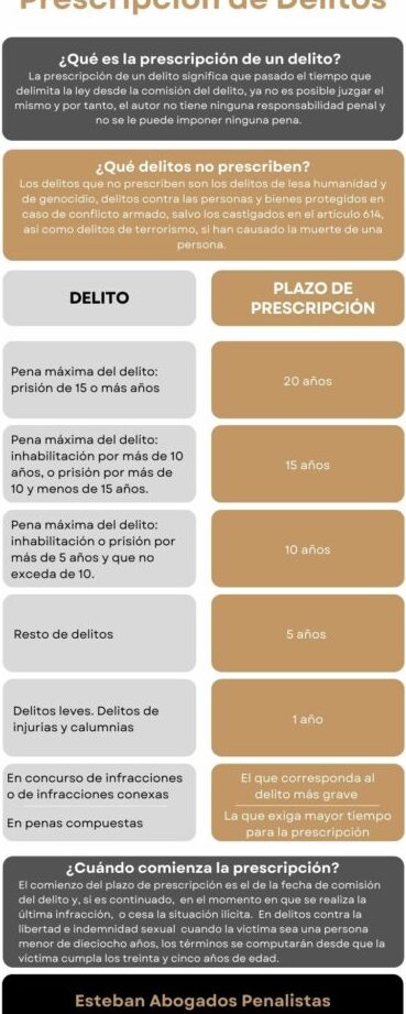 - Prescripción de delitos: Los delitos pueden prescribir después de un determinado número de años, dependiendo de su gravedad. Por ejemplo, los delitos graves como el asesinato no prescriben nunca, mientras que delitos menores como las faltas pueden prescribir en un plazo de 6 meses a 2 años.